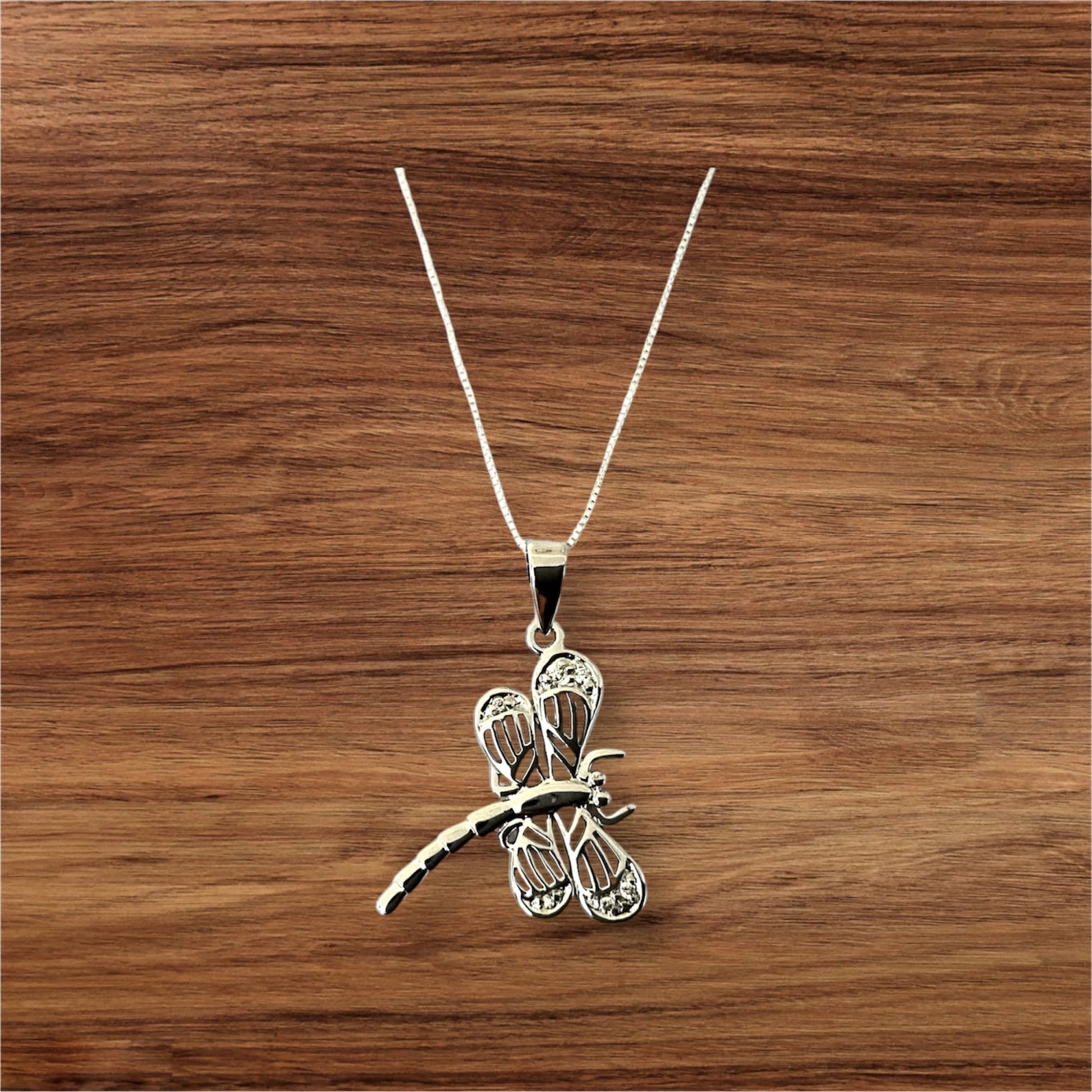 925 Sterling Silver Dragonfly Pendant Necklace + Free Chain