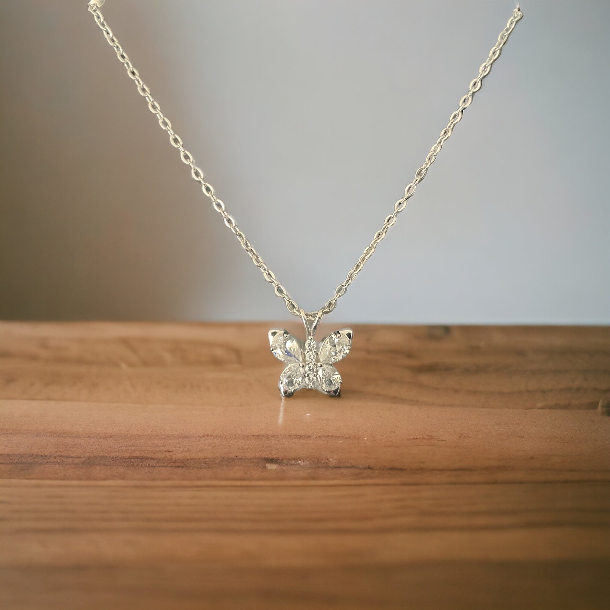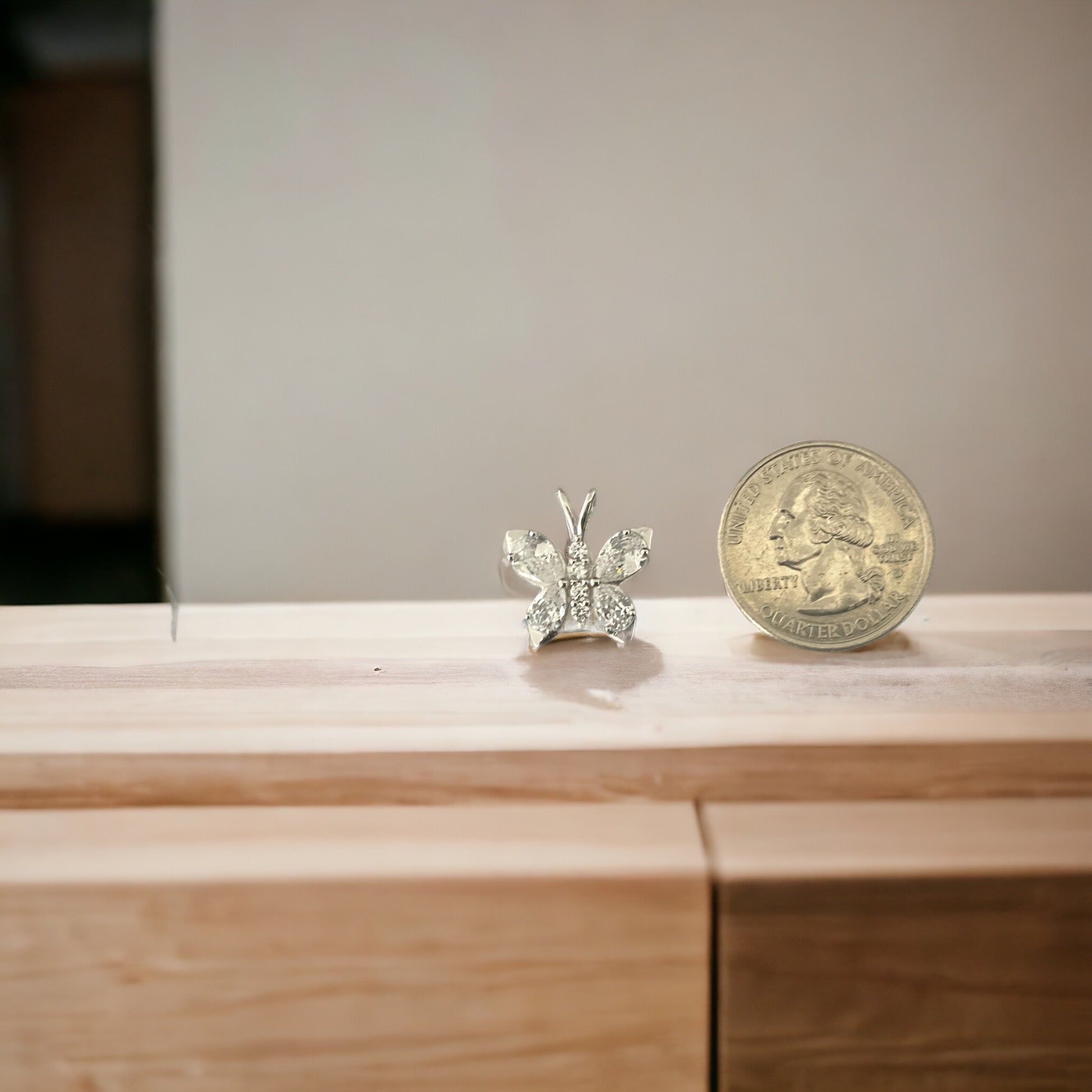 925 Sterling Silver Butterfly Pendant Necklace w/ Clear CZ + Free Chain