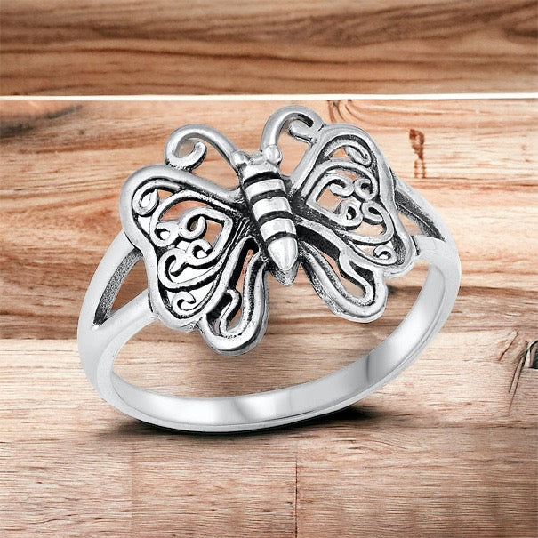 925 Sterling Silver Butterfly Ring Band Size 4-10