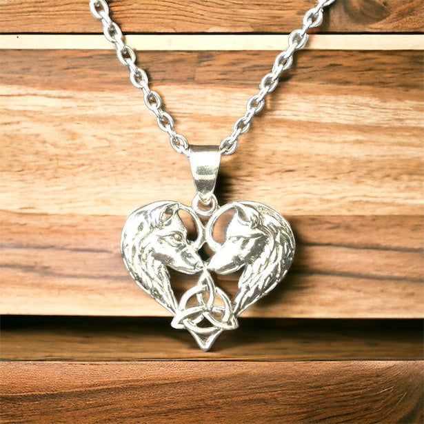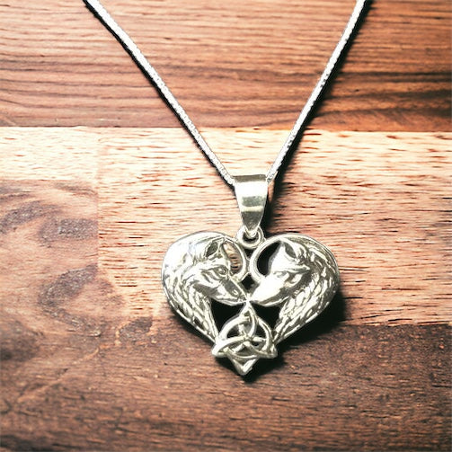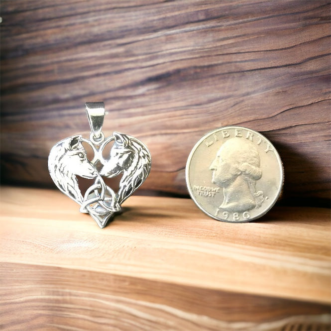Handcast 925 Sterling Silver Celtic Wolf Heart Pendant