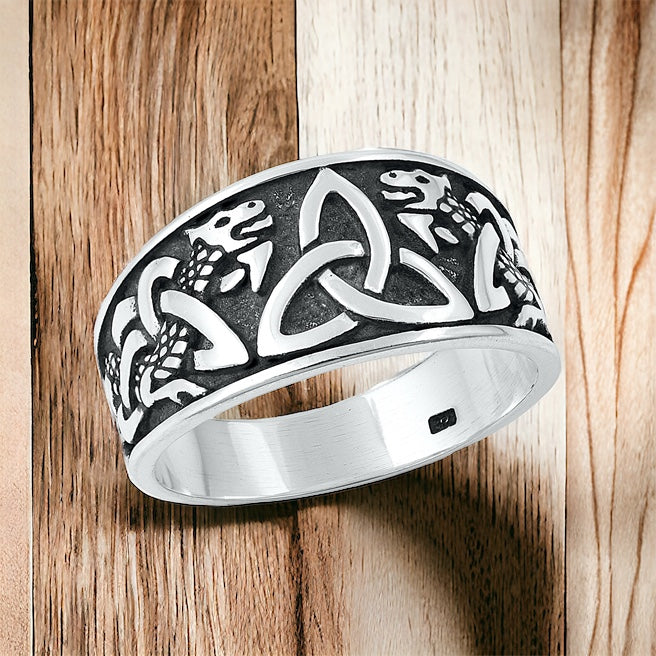 925 Sterling Silver Unisex Celtic Dragon Trinity Knot Ring